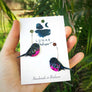 All earrings are completely handmade by Dee at Lunar Deesigns this means that each individual earring within the pair will be different in terms of glitter placement, making each bird unique. Resin begins as a free moving liquid and therefore is poured differently each time. Slight cosmetic imperfections may be present on the earrings, but these do not affect the integrity of the earring design and are unique to handmade resin items.