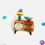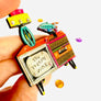The retro atomic furniture collection! Cool retro tv brooch with the twilight zone shown in the screen! Illustrated in house and hand crafted using woods and acrylic and hard glossed resin.