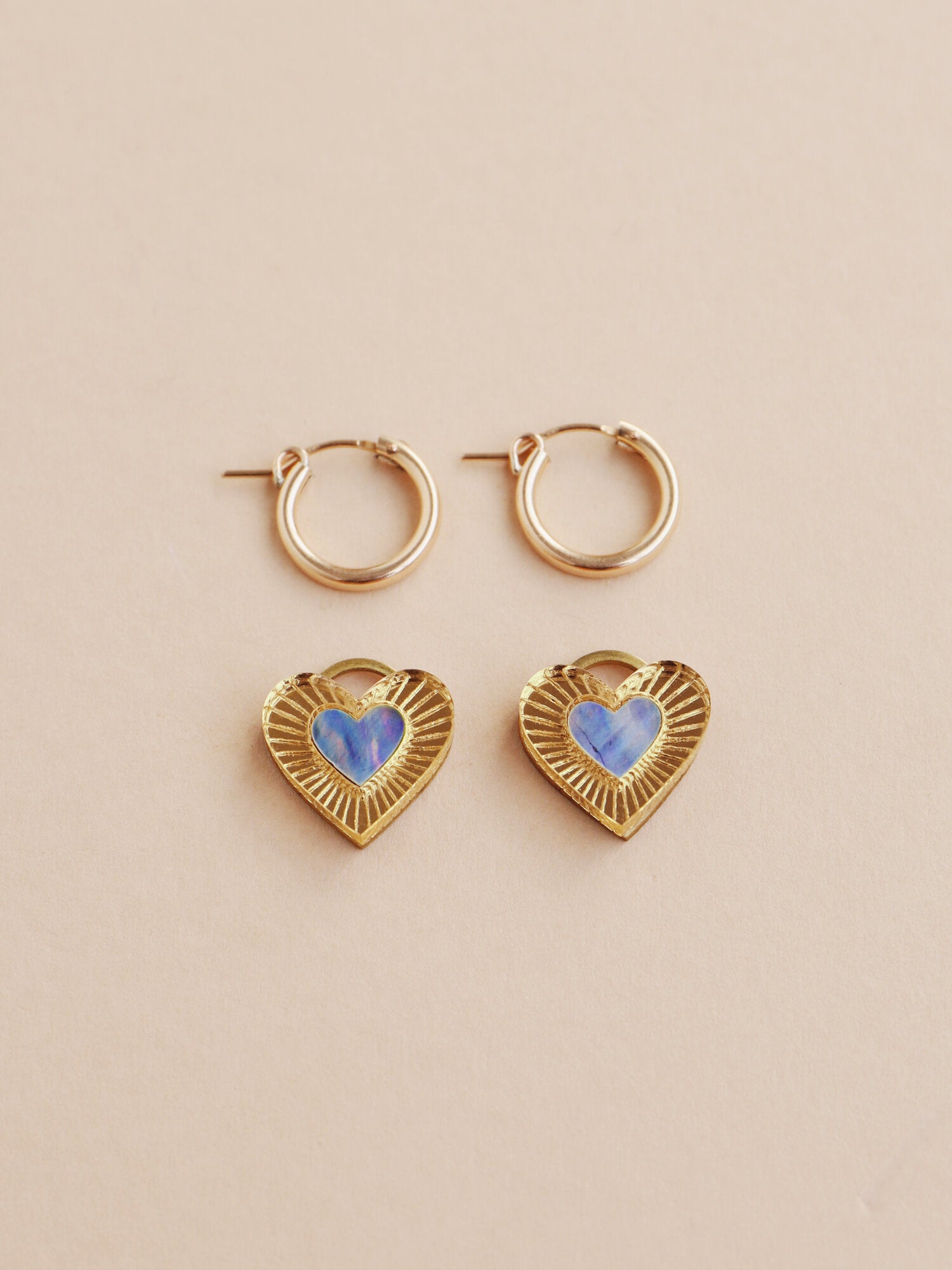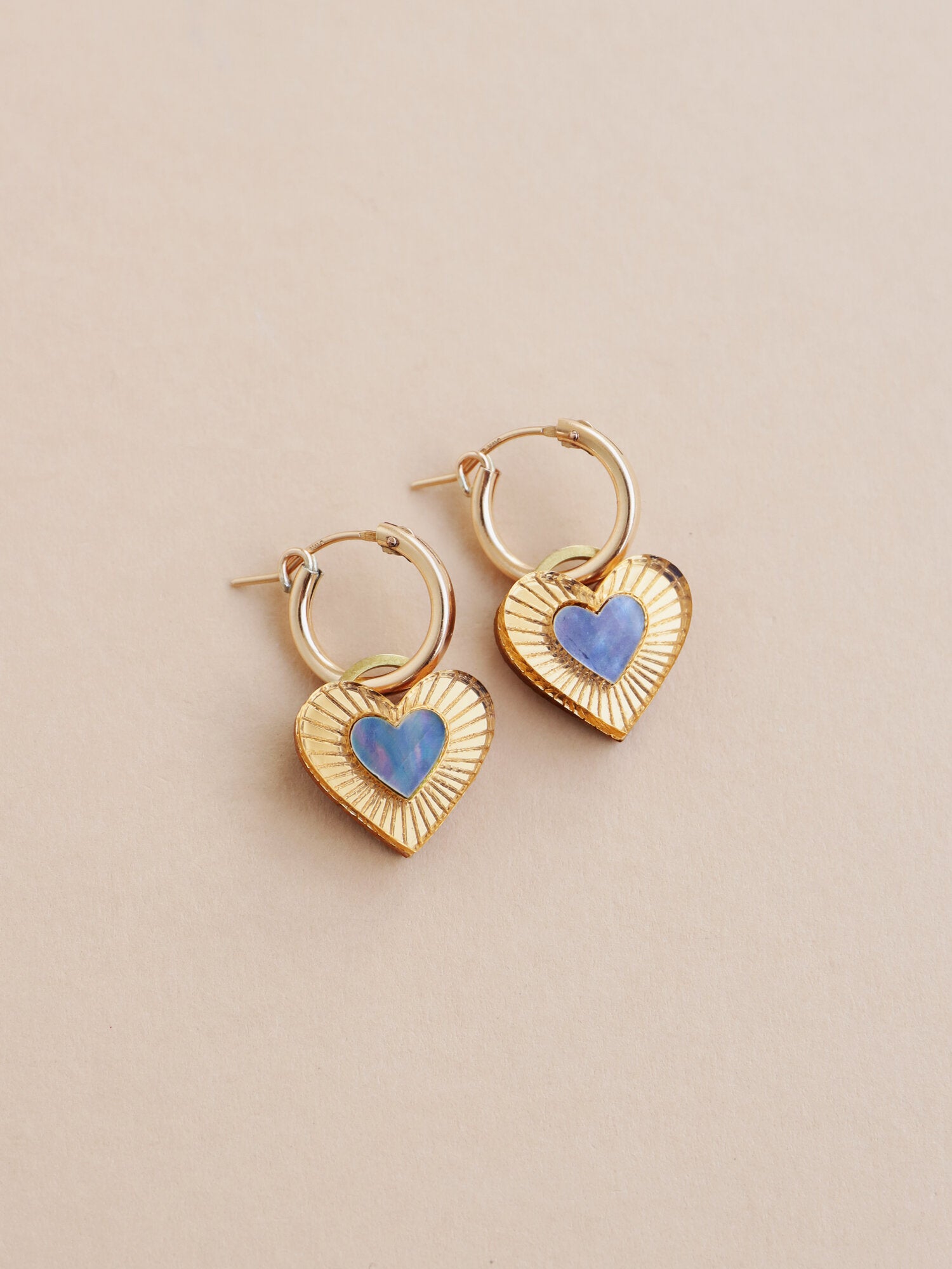 A little piece of love you can wear every day! Our lightweight heart-shaped hoop earrings are made using FSC approved wood, iridescent mother of pearl and gold mirror acrylic.