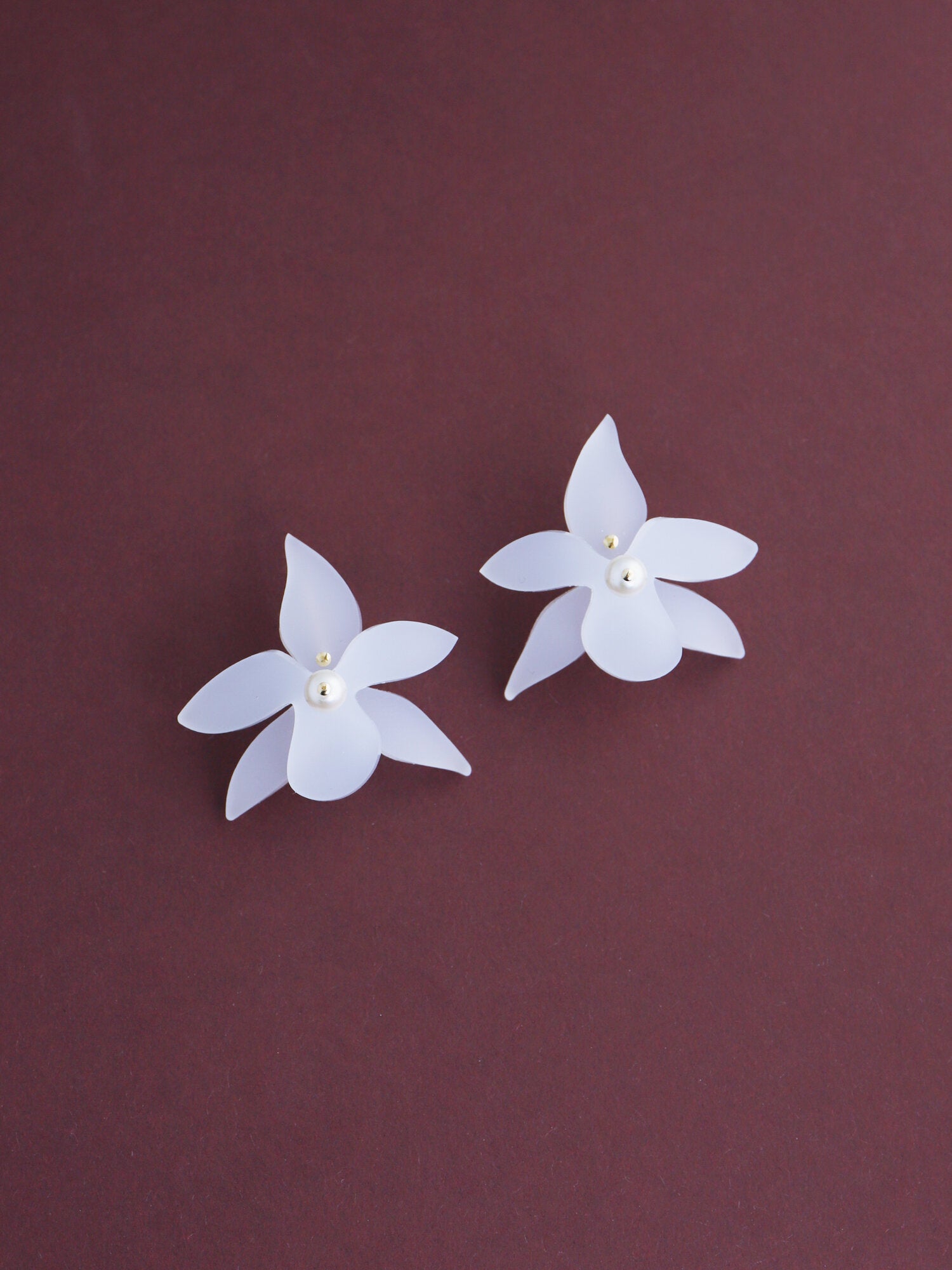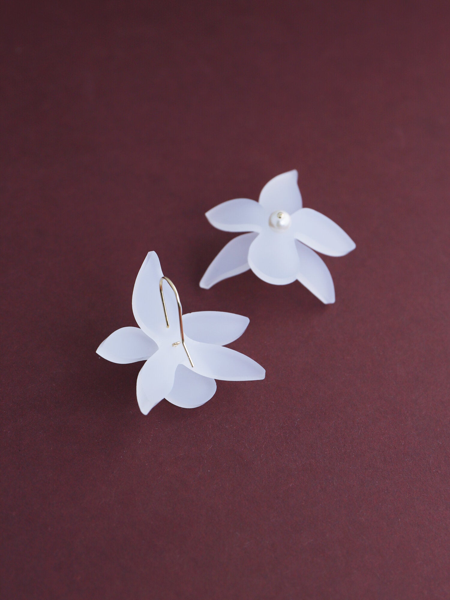 Inspired by nature’s meadows, our orchid earrings are hand-sculpted from acrylic with high quality glass pearl details.