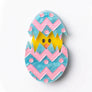 Brighten up your accessory collection with this delightful cracked egg brooch featuring an adorable little chick! This charming piece is perfect for adding a touch of whimsy to any outfit.