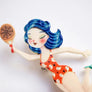 Blue hair girl brooch measuring 6.5 x 3 cm.
